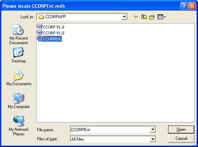 select CCORP V1.0 in File name (C:/CCORPAPP or the location where the original